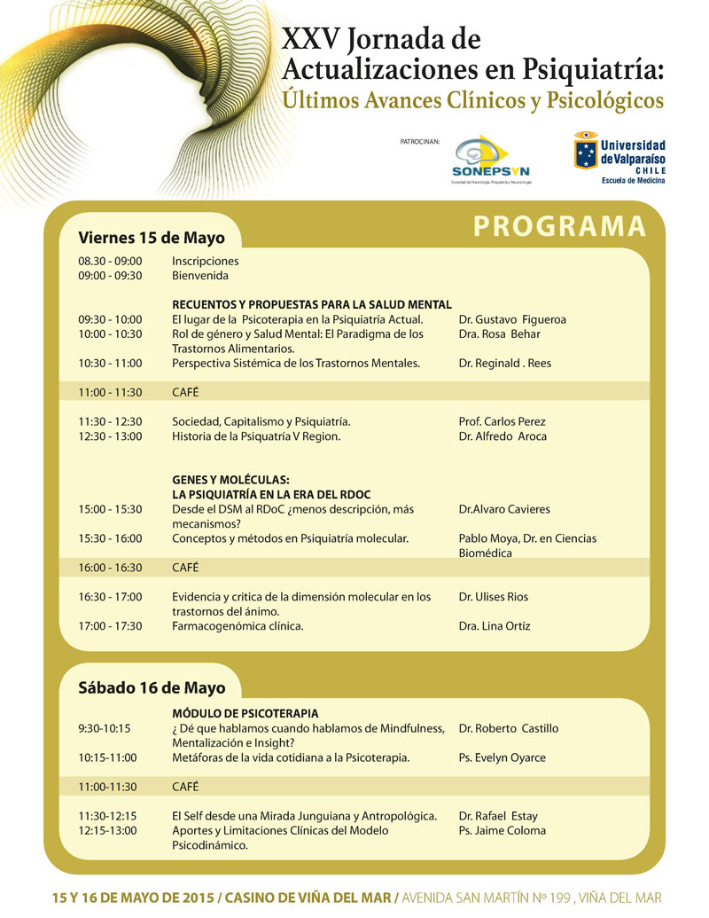 Seminarios, Jornadas De Trastornos Severos De La Personalidad, Jornadas De Actualizaciones En Psiquiatra, Capacitación en salud Mental APS, y muchos más.